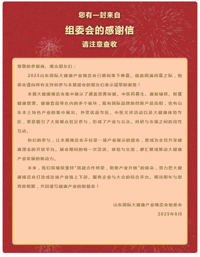 感谢信丨2025山东国际大健康产业博览会