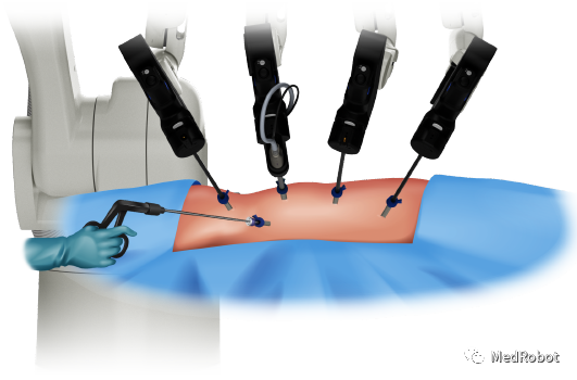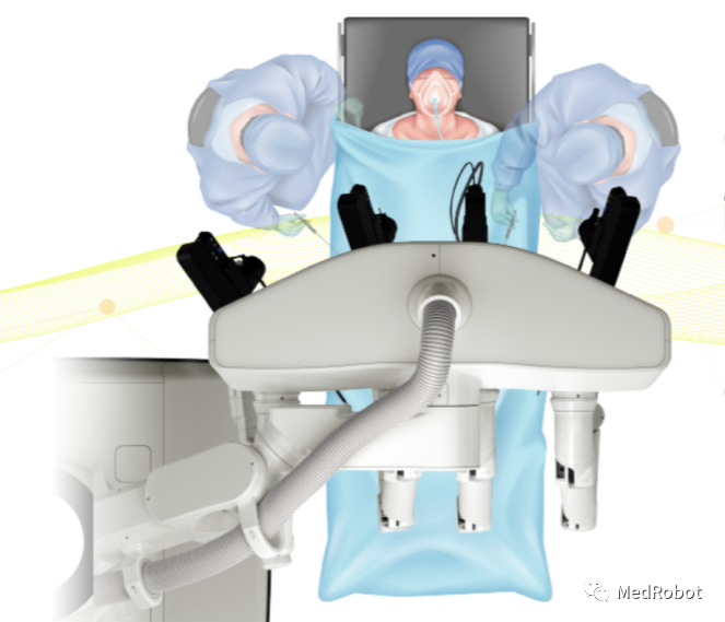 通过软件设置枢轴,枢轴是仪器的支撑点,由软件设置。套管针周围的工作空间很清晰,因为手臂不需要与套管针对接。
