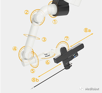 八自由度操作臂动作流畅,犹如人的手臂。机械臂的运动有望减少机械臂之间或对助手的干扰,以实现更顺畅的手术。