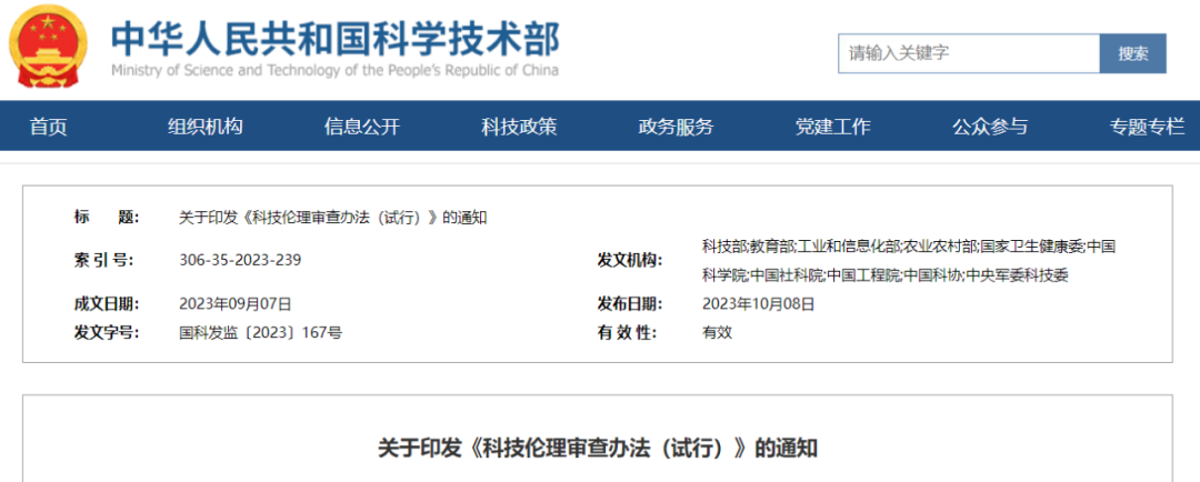 关于印发《科技伦理审查办法(试行)》的通知
