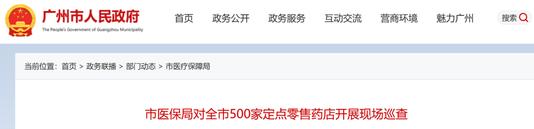 近日,广州市医保局发布《市医保局对全市500家定点零售药店开展现场巡查》的通知。
