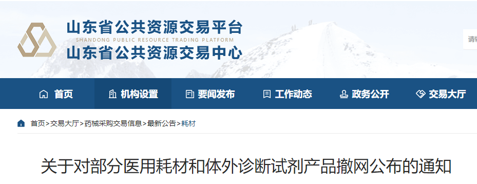 就在今日(10月30日),山东省公共资源交易平台发布了《关于对部分医用耗材和体外诊断试剂产品撤网公布的通知》(以下简称《通知》)。