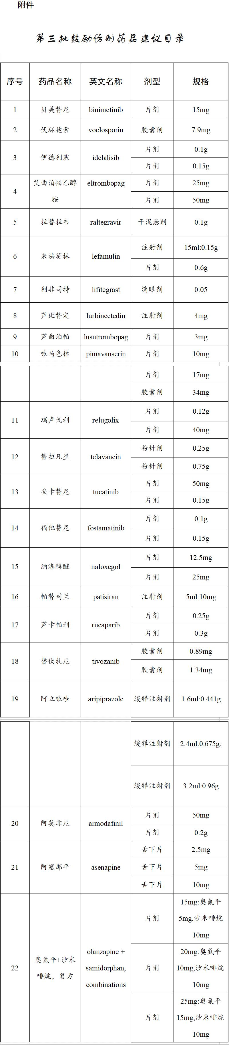 第三批鼓励仿制药品建议目录