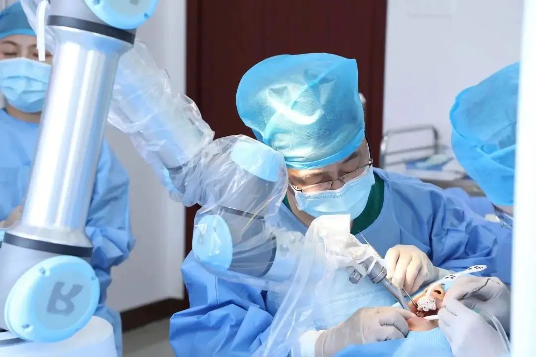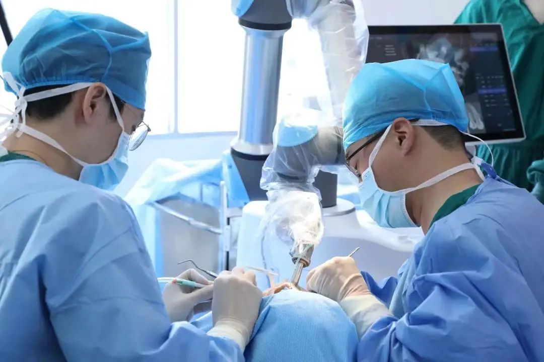术前,福建医科大学附属口腔医院陈江教授种植牙专家团队利用机器人软件完成术前规划制定。 手术当天,在柘荣县医院口腔科医师们为患者实施消毒、适时更换钻头等人工操作。