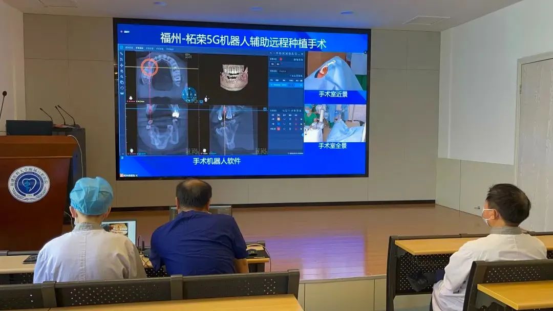 近日,福建医科大学附属口腔医院种植科陈江教授团队完成了一例“隔空种牙”手术。 来自宁德柘荣县的袁先生在5个月前,在牙科诊所拔除了右上后牙,由于咬合不便,他来到柘荣县医院口腔科寻求种植修复。 然而,受制于医疗条件,当地医院无法独立完成种植手术,必须到省级专科医院就诊。 但是,从柘荣到福州,185公里,路途来回奔波不及,加上工作繁忙,袁先生无法到福州就医。 幸得,柘荣县医院口腔科系福建医科大学附属口腔医院长期合作的帮扶试点科室,借助5G网络技术和口腔种植机器人系统,进行“福州—柘荣5G机器人远程种植牙手术”。