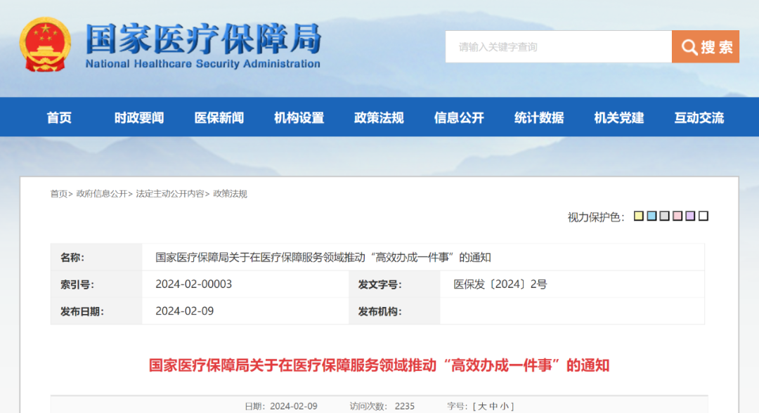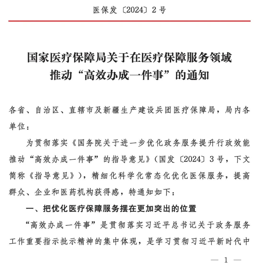 国家医保局发布《关于在医疗保障服务领域推动“高效办成一件事”的通知》