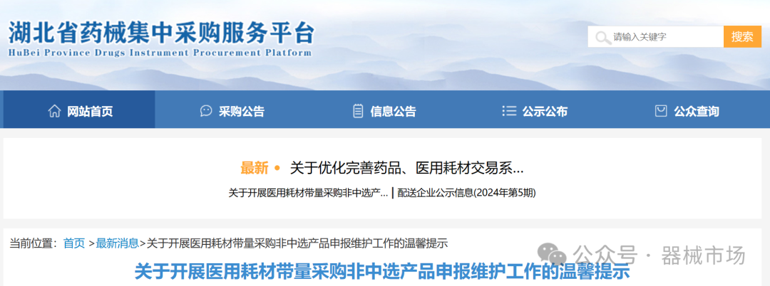 反之,属于集中带量采购非中选产品范围内,但未维护非中选产品和价格的医用耗材,湖北省药械集采平台将不定期进行梳理,一经查实将依规处理。