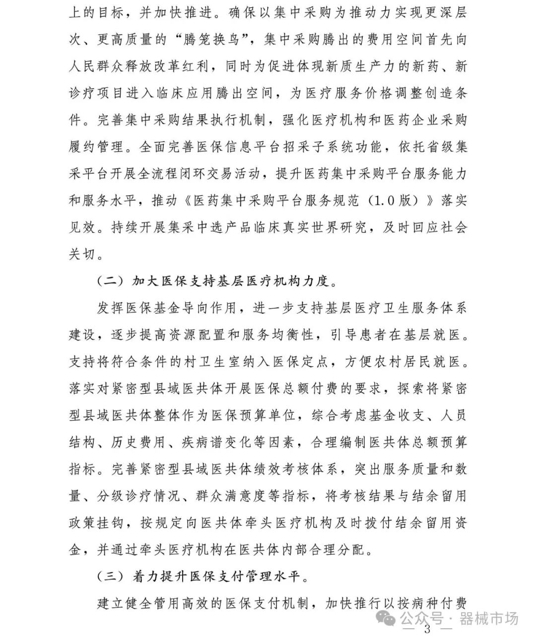 《通知》提出, 发挥医保基金导向作用,进一步支持基层医疗卫生服务体系建设,逐步提高资源配置和服务均衡性,引导患者在基层就医。支持将符合条件的村卫生室纳入医保定点,方便农村居民就医。