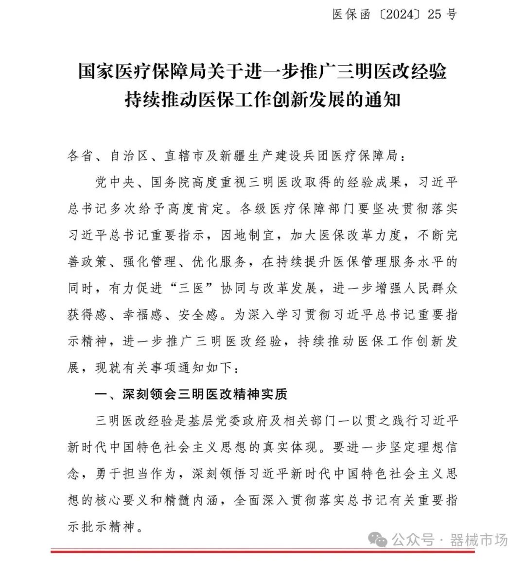 2024年5月24日,国家医保局发布《关于进一步推广三明医改经验 持续推动医保工作创新发展的通知》(以下简称《通知》),涉及集采、基层医疗、医保支付等多项内容。