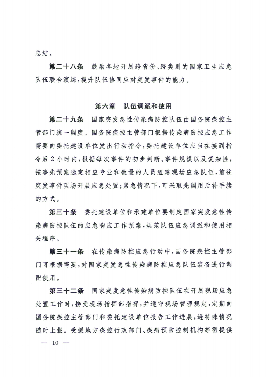 (六)队伍调派和使用。主要规定了队伍调派流程、指挥体系、协调机制、现场工作要求等。
