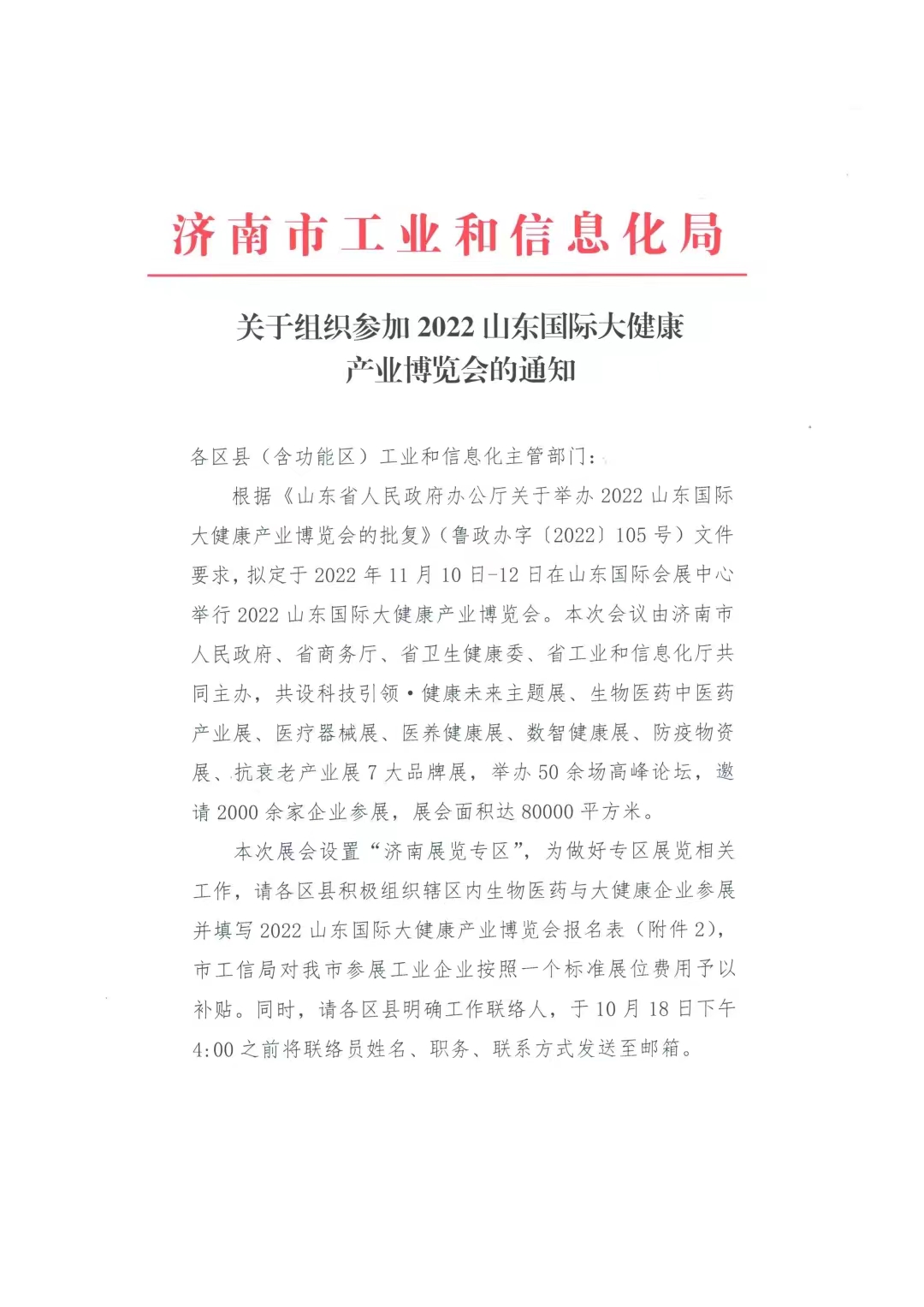 关于组织参加2022山东国际大健康博览会的通知