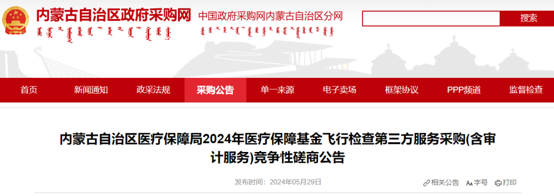 就在5月底,内蒙古医保局便发布了2024年医疗保障基金飞行检查第三方专业服务机构的采购公告。紧接着6月11日,成交公告正式发布,由北京东联国盛管理咨询有限公司等多家企业中标,预示着新一轮飞检即将展开。